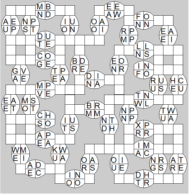 The only clues you have are the letter pairs we've given you in the grid. Each answer consists of a pair of words that share the letters that you'll write in the empty squares. In the example we've given you, we've filled in the letters S, E and W to make SINEW and SCREW. A few of the entries may have more than one possible answer, but only one will fit correctly with the rest of the puzzle.