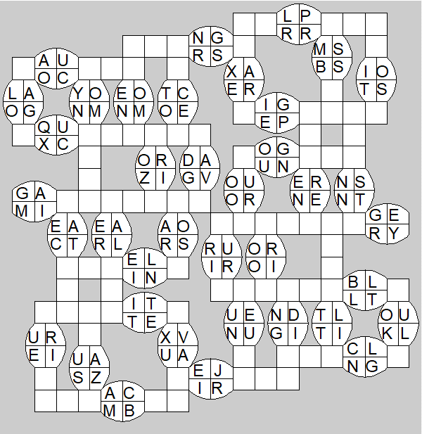 The only clues you have are the letter pairs we've given you in the grid. Each answer consists of a pair of words that share the letters that you'll write in the empty squares. In the example we've given you, we've filled in the letters S, E and W to make SINEW and SCREW. A few of the entries may have more than one possible answer, but only one will fit correctly with the rest of the puzzle.