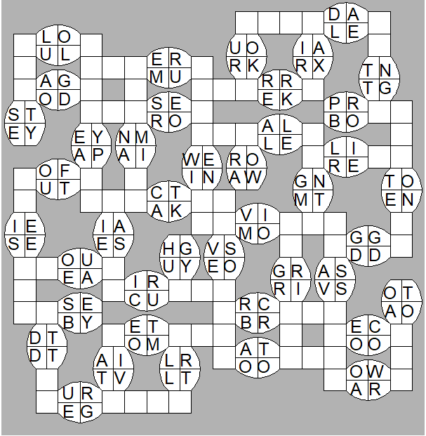 The only clues you have are the letter pairs we've given you in the grid. Each answer consists of a pair of words that share the letters that you'll write in the empty squares. In the example we've given you, we've filled in the letters S, E and W to make SINEW and SCREW. A few of the entries may have more than one possible answer, but only one will fit correctly with the rest of the puzzle.