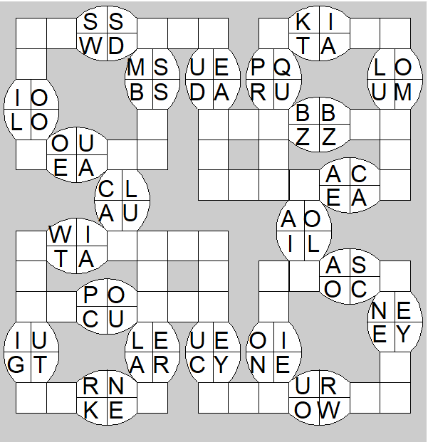 The only clues you have are the letter pairs we've given you in the grid. Each answer consists of a pair of words that share the letters that you'll write in the empty squares. In the example we've given you, we've filled in the letters S, E and W to make SINEW and SCREW. A few of the entries may have more than one possible answer, but only one will fit correctly with the rest of the puzzle.