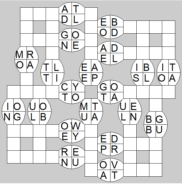 The only clues you have are the letter pairs we've given you in the grid. Each answer consists of a pair of words that share the letters that you'll write in the empty squares. In the example we've given you, we've filled in the letters S, E and W to make SINEW and SCREW. A few of the entries may have more than one possible answer, but only one will fit correctly with the rest of the puzzle.